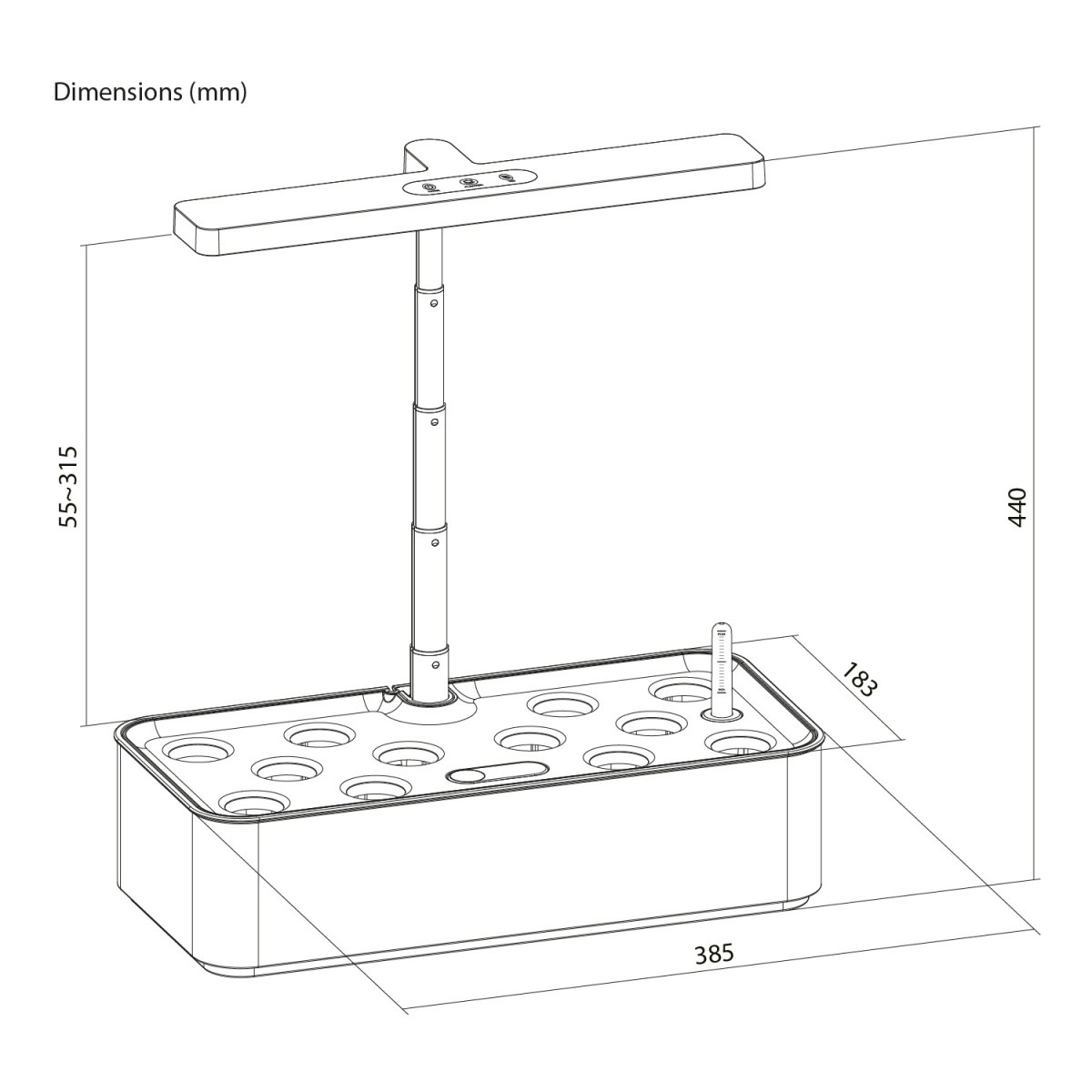 Datorită capacității de până la 12 poziții de cultivare, este ideal pentru bucătărie și living. Circulația automată a apei asigură oxigenarea rădăcinilor, iar indicatorul de nivel te avertizează la timp să reumpli rezervorul. Cultivă fără sol, fără murdărie și cu eficiență maximă.