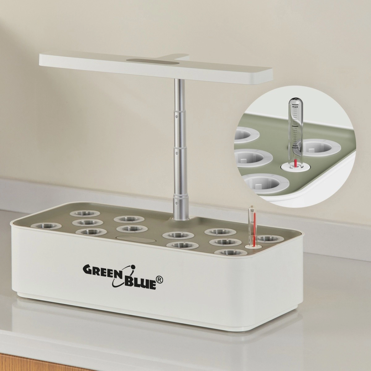 Ghiveciul inteligent GREENBLUE GB133 este o soluție modernă pentru cultivare pe tot parcursul anului în interior. Iluminarea LED integrată, pompa silențioasă și dozarea precisă a nutrienților creează condiții ideale pentru o creștere rapidă și sănătoasă. Pur și simplu introduci inserturile cu semințe, adaugi apă și nutrienți, reglezi înălțimea luminii – restul este gestionat de sistem.