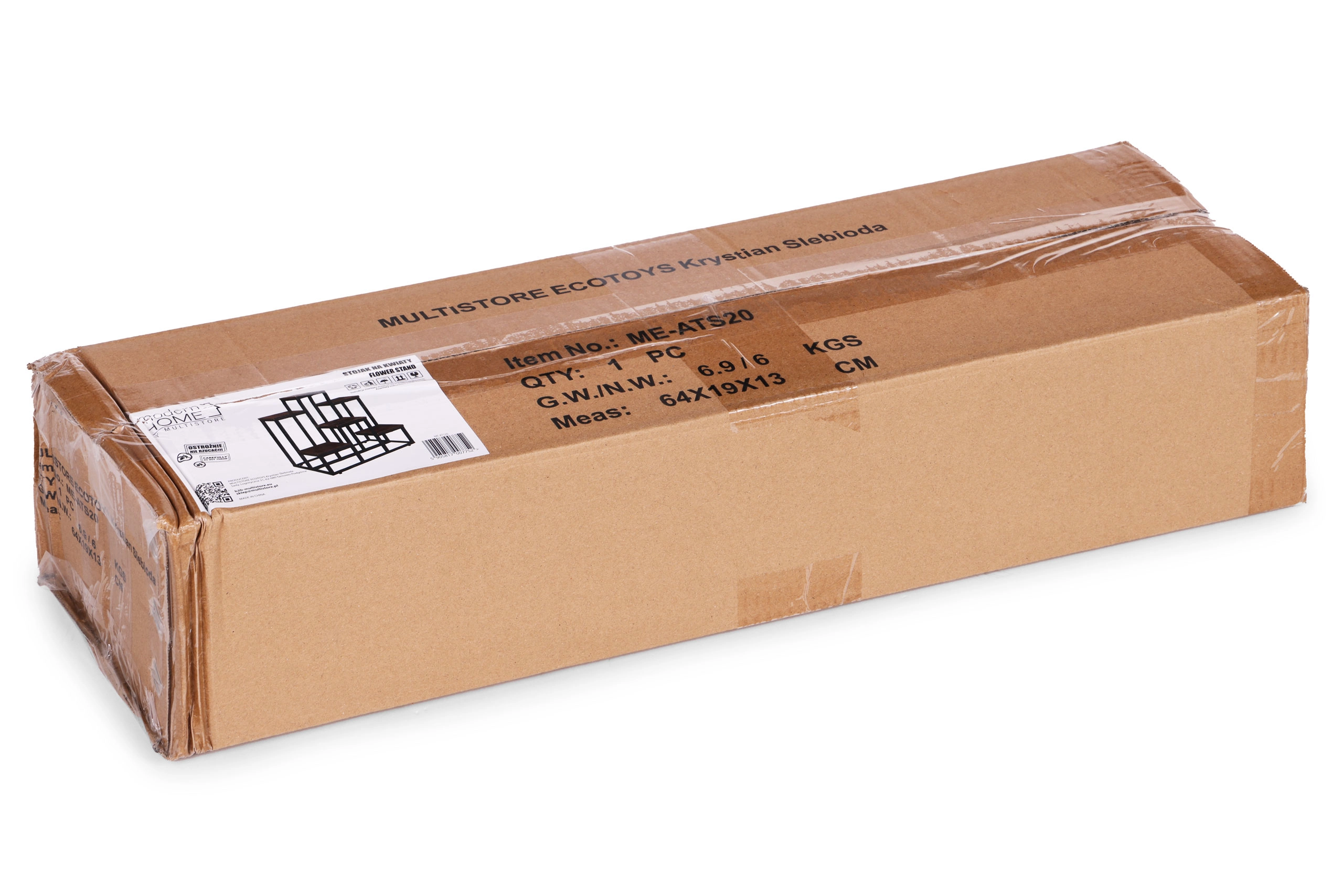 Oțelul vopsit în câmp electrostatic rezistă coroziunii și uzurii mecanice, iar picioarele reglabile/antiderapante protejează podeaua și ajută la nivelarea denivelărilor. Suportul este ideal pentru decorațiuni interioare, cărți și accesorii mici și se potrivește perfect în interioare loft, moderne și scandinave.