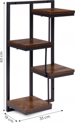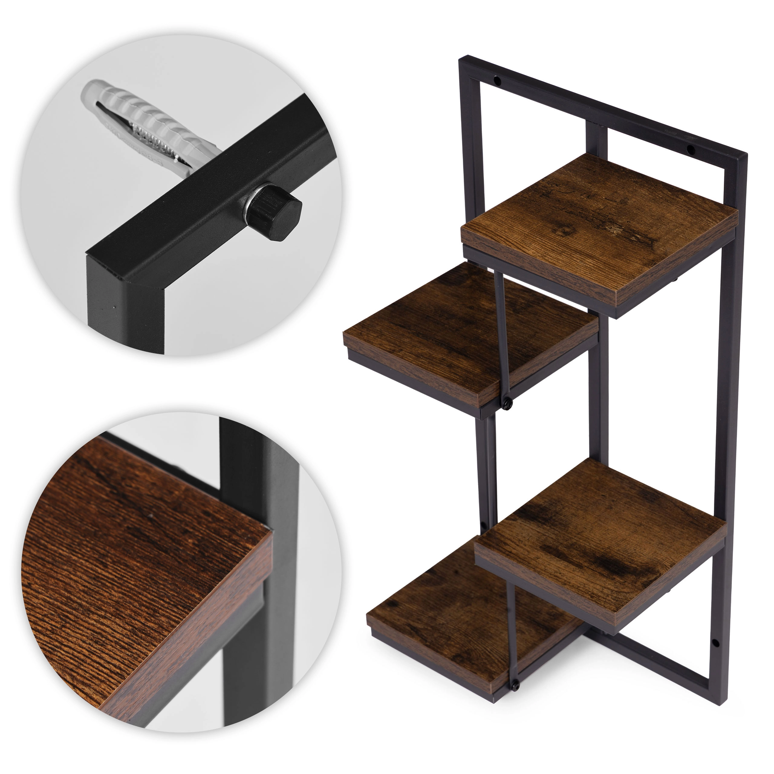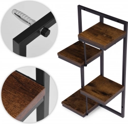Cadrul robust din oțel vopsit în câmp electrostatic rezistă la coroziune și uzură mecanică, în timp ce plăcile din PAL laminat cu decor de lemn conferă un aspect primitor. Capacitatea de 20 kg asigură stabilitate chiar și pentru ghivece și decorațiuni mai grele.