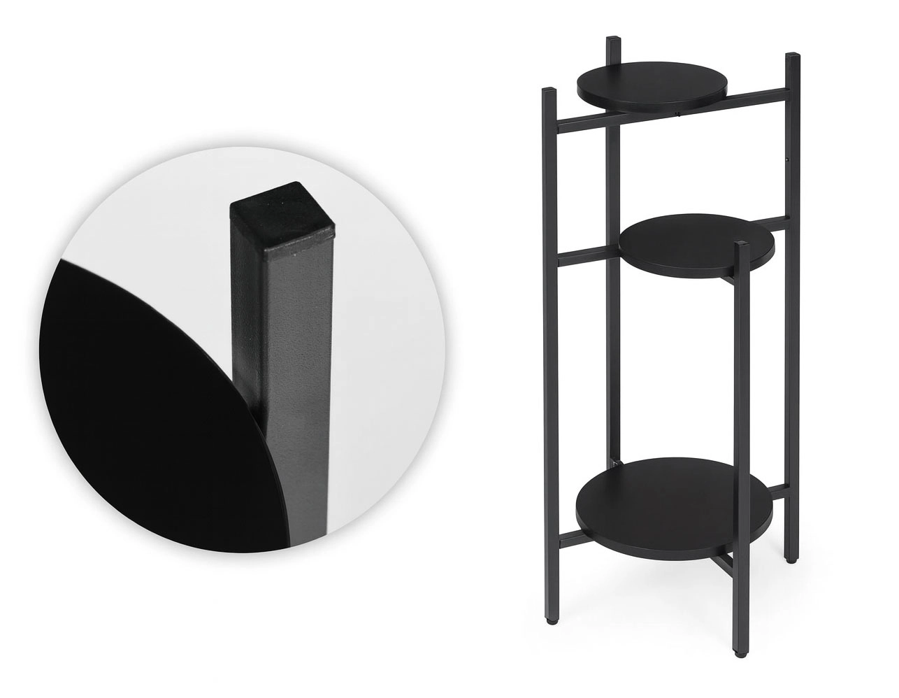 Acest suport de design pentru flori este o alegere ideală pentru living, dormitor, birou și spații comerciale. Trei polițe circulare la înălțimi diferite permit aranjarea spectaculoasă a plantelor, ierburilor aromatice și micilor decorațiuni, economisind spațiu și creând o grădină verticală în orice colț.