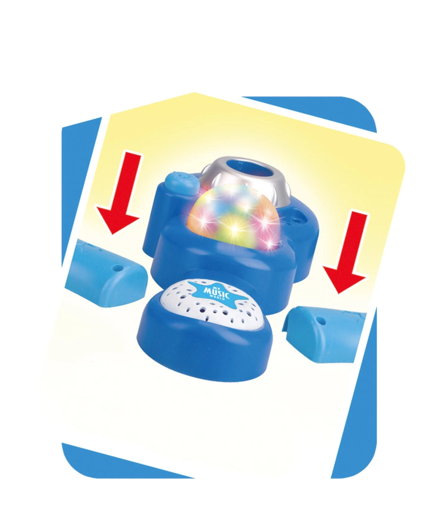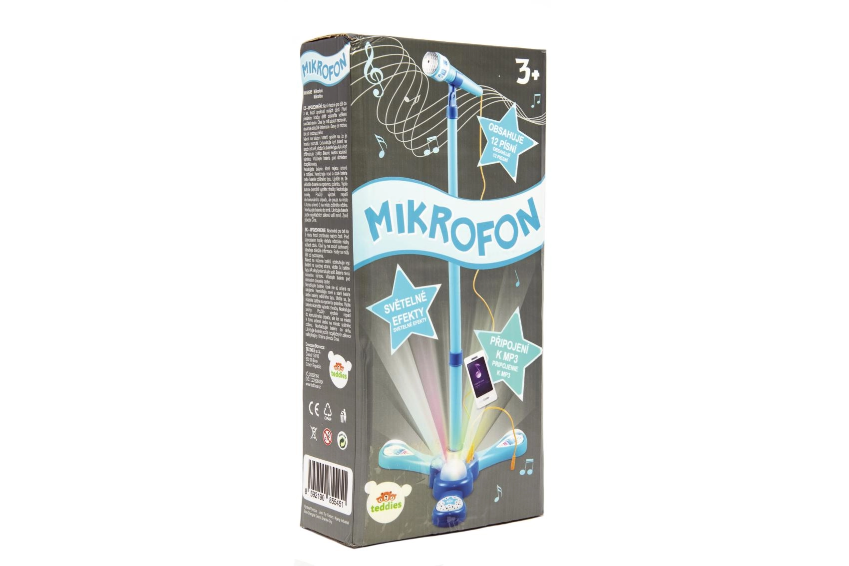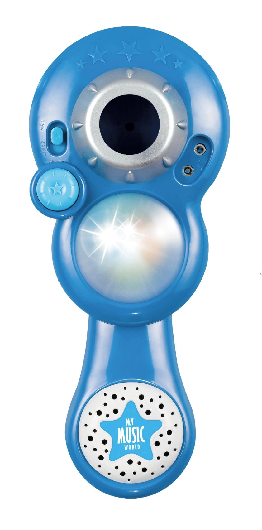 Microfon karaoke distractiv pentru copii, cu stativ, aduce la orice petrecere efecte luminoase colorate, 12 melodii integrate și posibilitatea de conectare a unui MP3 sau telefon mobil. Datorită înălțimii ajustabile de 40–80 cm, crește odată cu copiii și le susține încrederea în sine și dragostea pentru muzică.