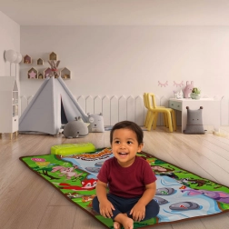Suprafața căptușită, confortabilă, este sigură pentru joaca pe podea. Covorașul se pliază simplu și se ia cu ușurință oriunde.