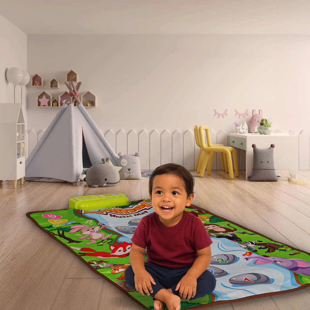 Acest covoraș muzical pentru copii transformă fiecare zi într-un joc plin de bucurie. Căsuțele numerotate îi introduc pe copii în tonurile din Do major, iar animăluțele drăguțe îi învață să deosebească sunetele și culorile. Suprafața moale și ușoară este confortabilă pentru joaca pe podea și se transportă cu ușurință.