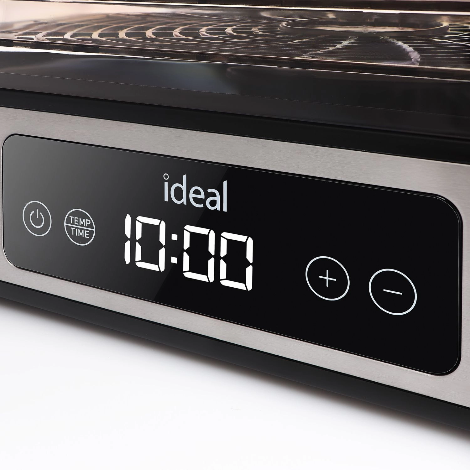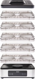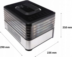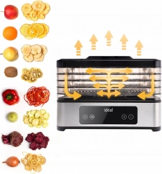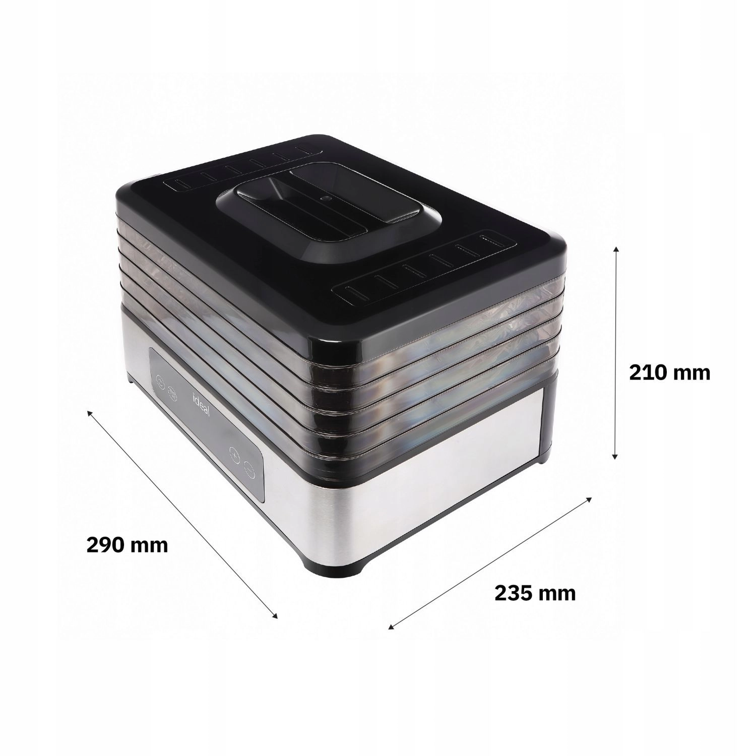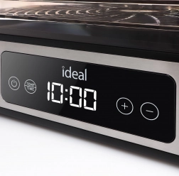 Controlul este extrem de simplu datorită panoului LED electronic cu temporizator de la 30 de minute până la 24 de ore. Funcționarea silențioasă și eficientă energetic este potrivită pentru uscarea pe timp de noapte, iar designul transparent permite monitorizarea continuă fără deschidere. Tăvile au înălțime reglabilă pentru diferite grosimi de felii, iar dispozitivul se demontează și se curăță ușor.