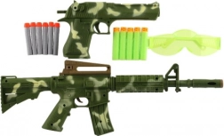 Acest set pentru micii trăgători oferă tot ce este necesar pentru o joacă dinamică și în același timp sigură. Pușca este echipată cu un vizor detașabil pentru ochire mai precisă, pistolul este potrivit pentru acțiune rapidă, iar gloanțele din spumă asigură o utilizare sigură. Ochelarii de protecție sunt incluși în pachet pentru a face jocul și mai sigur.
