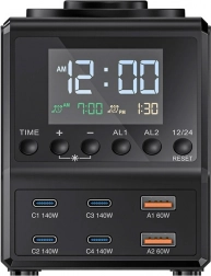 BlitzWolf BW-FW10 combină funcțiile unui ceas deșteptător modern cu o stație de încărcare avansată 10 în 1. Încarcă până la 8 dispozitive simultan datorită celor patru porturi USB‑C, două USB‑A și două zone de încărcare wireless. Puterea maximă de 240 W și suportul pentru PD 3.1 (până la 140 W), PPS, QC 4.0 asigură alimentarea rapidă și eficientă a telefoanelor, tabletelor, laptopurilor și consolelor.