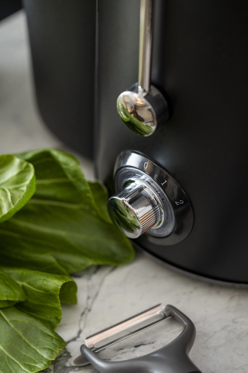 Introduceți bucăți mai mari de fructe și legume fără tăiere îndelungată. Economisiți timp și preparați mai mult suc în câteva clipe.