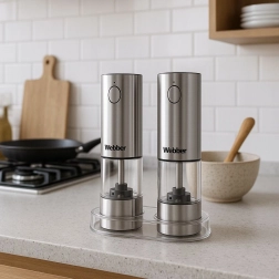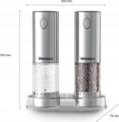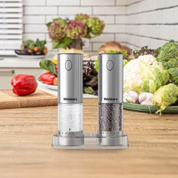 Acest set universal de râșnițe electrice este ideal pentru sare, piper, ierburi uscate și alte condimente. Datorită controlului simplu cu un singur buton și rezervorului transparent, ai mereu vizibilitate asupra cantității. Lumina LED de sub râșniță facilitează condimentarea chiar și la iluminare redusă.
