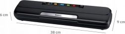 Controlul intuitiv One Touch este la îndemâna oricui – cu o singură atingere porniți procesul, iar capacul se deschide sau se închide comod. Datorită celor trei moduri (delicat/fragil, uscat, umed) adaptați ușor performanța tipului de alimente. Dispenserul integrat de folie cu tăietor asigură tăieturi curate și drepte pentru pachete perfect etanșe. În pachet primiți 10 pungi pentru vidare în două dimensiuni practice.