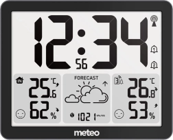 Păstrează controlul asupra condițiilor din casă și de afară. Stația meteo METEO cu DCF oferă un ecran LCD clar cu cifre mari, senzor fără fir pentru măsurători exterioare și pictograme de prognoză pentru orientare rapidă. Datorită barometrului 800–1100 hPa, urmărește evoluția presiunii, afișează trendul și ajută la estimarea mai bună a schimbărilor vremii.