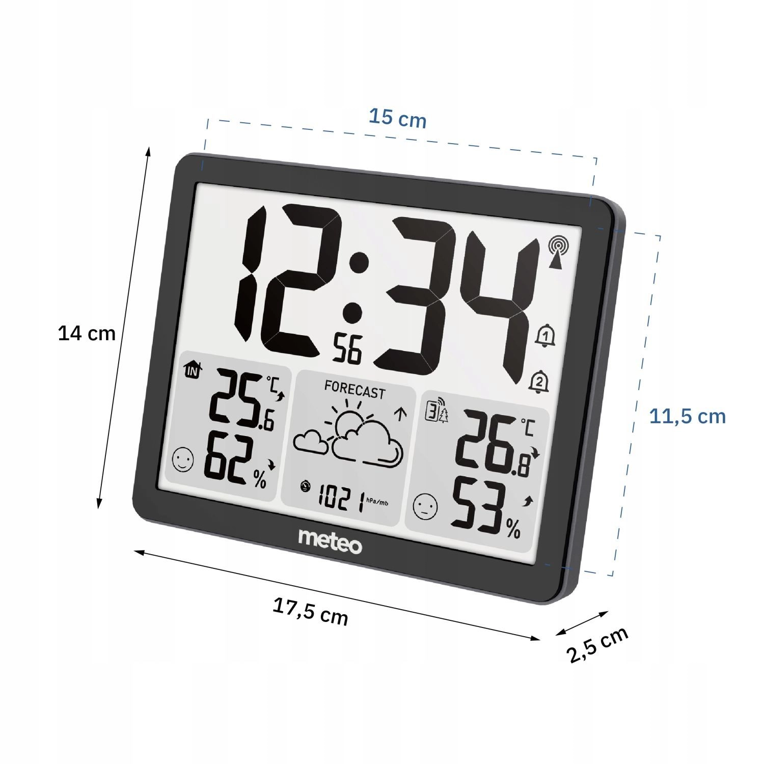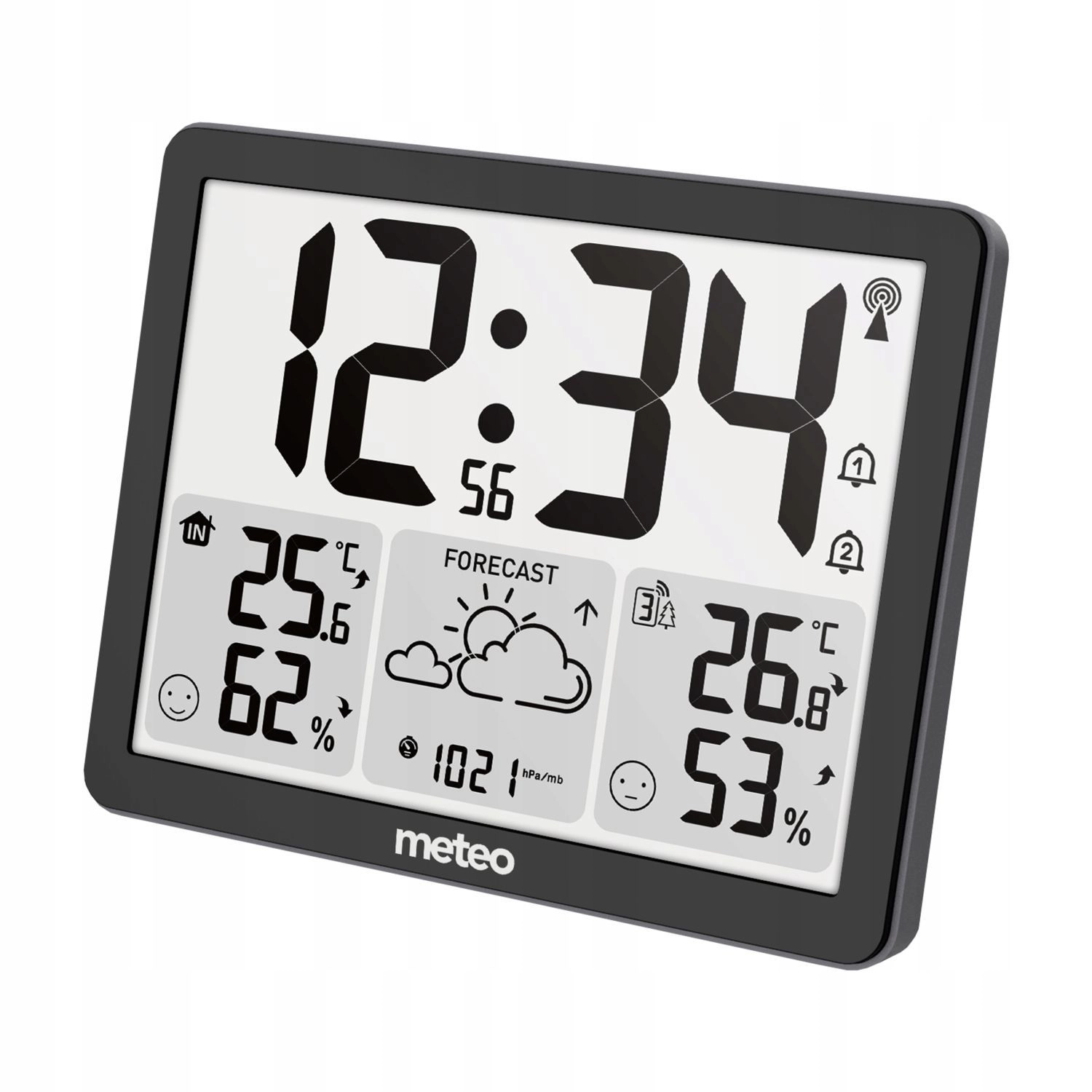 Sincronizarea automată a orei DCF asigură precizie maximă fără setări. Funcția MAX/MIN stochează valorile extreme ale temperaturii și umidității, în timp ce indicatorii de confort te ajută să obții cel mai bun ambient acasă. Desigur, are și alarmă și control intuitiv.
