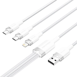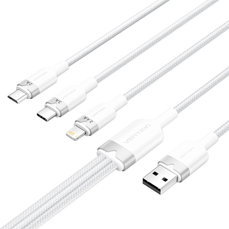 Cauți un singur cablu pentru toate dispozitivele? Vention 3‑în‑1 combină conectorii Lightning, USB‑C și Micro‑B, astfel încât încarci ușor telefoane APPLE, SAMSUNG, XIAOMI și accesorii mai vechi. Datorită curentului maxim de 3 A și puterii de până la 60 W pentru USB‑C obții încărcare rapidă și sigură, iar 480 Mb/s asigură sincronizarea rapidă a fotografiilor, muzicii și documentelor.