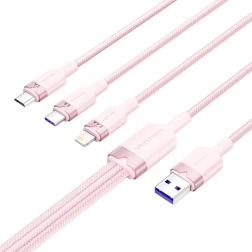 Versatilitate pe primul loc: un singur cablu, trei conectori – USB‑C, Lightning și Micro‑B. Încarcă și sincronizează dispozitive diferite fără să mai cauți cablul potrivit. Cipul integrat distribuie inteligent energia între capetele conectate, garantând încărcare optimă și sigură fără supraîncălzire și supraîncărcare.