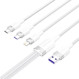 Cablul universal Vention 3în1 permite, cu ajutorul unui singur fir, încărcarea simultană a până la trei dispozitive. Oferă încărcare rapidă de până la 120 W, distribuție inteligentă a puterii și transfer de date de 480 Mb/s. Datorită împletiturii rezistente și materialelor de calitate, este ideal pentru utilizare zilnică acasă și la birou.