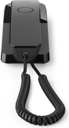 Telefonul cu fir practic și compact Gigaset Desk 200, în elegantul finisaj negru, economisește spațiu și poate fi așezat pe masă sau montat pe perete. Se alimentează direct din linia telefonică (fără adaptor), oferă 10 taste pentru apelare rapidă, semnalizare optică LED, reapelare (redial), compatibilitate cu aparate auditive și comutare DTMF/impuls pentru utilizare atât în rețele fixe, cât și în centrale PBX.