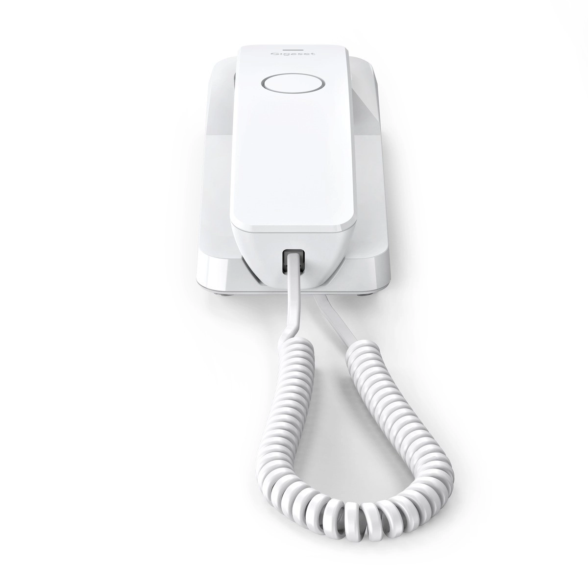 Gigaset Desk 200 combină funcțiile de bază ale liniilor fixe cu un design extrem de subțire și economic. Datorită montajului facil pe perete, este ideal pentru spații mici, recepții și camere tehnice. Telefonul este alimentat direct din linia analogică, astfel că nu are nevoie de adaptor de alimentare extern – doar conectați și sunați.