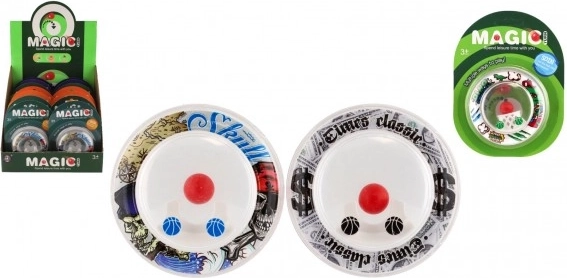 Diametrul de 8 cm îl transformă în distracția ideală de buzunar – pentru mașină, sala de așteptare și excursii. Jocul este realizat din plastic ușor și este livrat pe un carton de 12 × 16 cm, în diverse motive colorate și tematice (de ex. sportive sau cu dinozauri), care îi atrag pe copii.