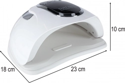 Panoul de control practic oferă timpi presetati 10 s, 30 s, 60 s și 99 s (low heat), care reduc șocul termic pentru unghiile sensibile. Senzorul de mișcare integrat pornește automat lampa după introducerea mâinii sau piciorului, accelerând munca atât în salon, cât și acasă.