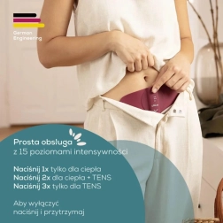 Trăiește zilele menstruației mai confortabil datorită îmbinării tehnologiei TENS cu încălzirea delicată, care reduc împreună percepția durerii în zona inferioară a abdomenului. Dispozitivul stimulează fibrele nervoase prin piele, susține eliberarea de endorfine și oferă ameliorare eficientă și naturală fără medicație.