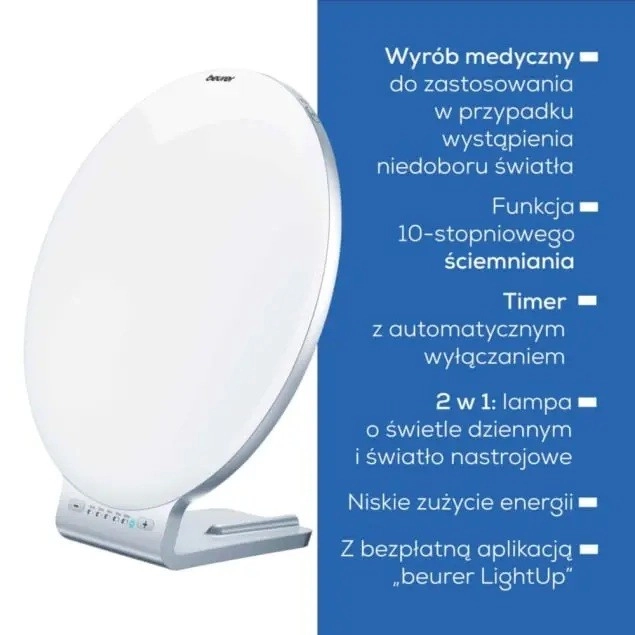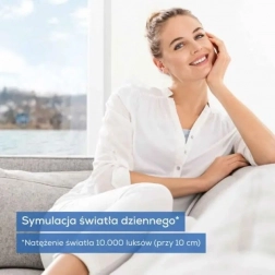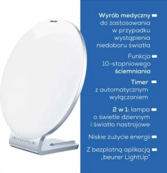 BEURER TL 100 este o lampă elegantă pentru terapie cu lumină, care simulează lumina naturală a zilei și ajută la îmbunătățirea dispoziției, concentrării și energiei de dimineață. Intensitatea de până la 10.000 lux (la o distanță de aproximativ 10 cm) oferă suficientă lumină pentru sesiuni scurte și eficiente, ideale de exemplu la începutul zilei.