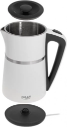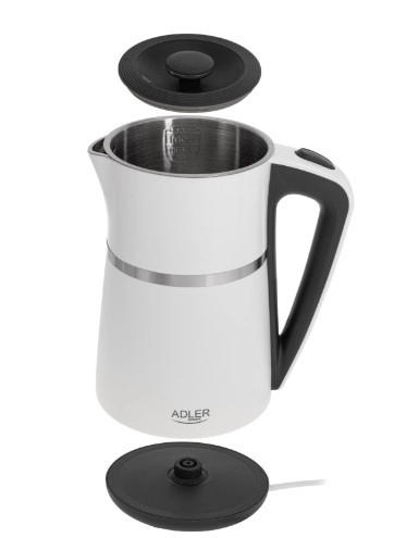 Fierbătorul ADLER AD 1355 oferă fierbere rapidă a apei, funcționare silențioasă și utilizare sigură datorită carcasei cu perete dublu. Interiorul din inox asigură gust curat al apei și întreținere facilă, în timp ce elementul de încălzire plat accelerează încălzirea și ușurează îndepărtarea depunerilor de calcar.