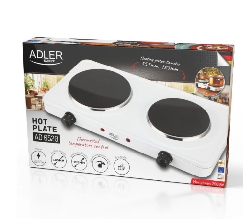Căutați o plită fiabilă și economă de spațiu pentru gătit zilnic sau încălzire rapidă? Plita electrică cu două ochiuri ADLER AD 6520 combină puterea mare de 2500 W cu dimensiuni compacte, fiind perfectă pentru bucătării mici, case de vacanță, birouri și cămine studențești. Datorită celor două plite cu diametre diferite, adaptați ușor vasele și stilul de gătire.
