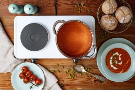 Diametrele de 185 mm și 155 mm acoperă oalele și tigăile uzuale, astfel încât puteți fierbe supa și pregăti garnitura în același timp.