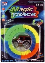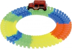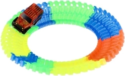 Segmentele neon ale pistei strălucesc frumos în întuneric, iar datorită construcției flexibile le poți îndoi și combina liber în trasee noi. Schimbarea traseului durează doar o clipă.