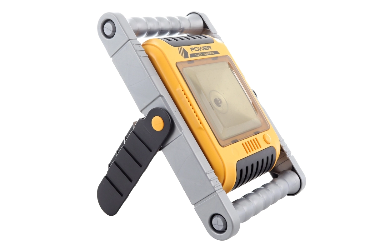 Lampa portabilă pentru șantier, ușoară și rezistentă, este ideală pentru lucrări în interior și exterior, iluminat de urgență sau proiecte hobby. Datorită suportului, puteți regla cu ușurință înclinarea și direcția fasciculului, pentru a ilumina exact ceea ce aveți nevoie.