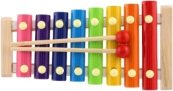 Acest xilofon compact pentru copii este o alegere excelentă pentru primul contact cu muzica. Datorită lamelor metalice în culori vii, copiii recunosc cu ușurință notele și pot învăța melodii simple. Rama robustă din lemn asigură stabilitate și durabilitate.