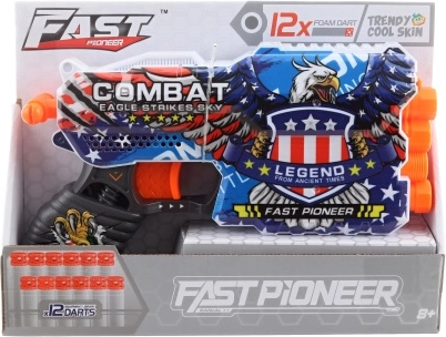 Bucură-te de distracție plină de acțiune cu pistolul cu gloanțe din spumă Vultur, care impresionează prin designul său expresiv cu vultur. Construcția ușoară din plastic asigură prindere confortabilă și încărcare facilă, fiind ideală pentru dueluri rapide și antrenarea preciziei.