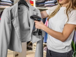 Aranjează hainele direct pe umeraș. Mânerul pliabil economisește spațiu și face aparatul ideal atât pentru acasă, cât și în călătorii.