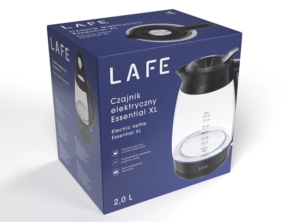 Cană LAFE Essential XL îmbină aspectul modern cu practicitatea. Sticla rezistentă permite verificarea ușoară a nivelului apei, în timp ce iluminarea LED indică încălzirea și adaugă stil. Datorită puterii de 2200 W, apa fierbe în câteva clipe pentru întreaga familie.