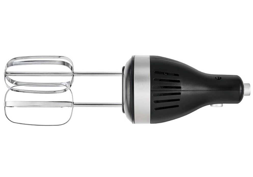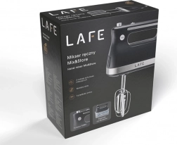 Pachetul include teluri din inox pentru batere și cârlige pentru frământat pentru aluat. Totul se depozitează comod în cutia transparentă, care păstrează clar accesoriile și cablul într-un singur loc. Construcția compactă și mânerul ergonomic asigură utilizare confortabilă și curățare ușoară.