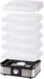 Uscați mai multe porții simultan și păstrați procesul sub control datorită nivelurilor transparente. Tăvile pot fi îndepărtate după nevoie și se curăță ușor.