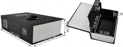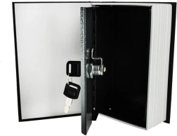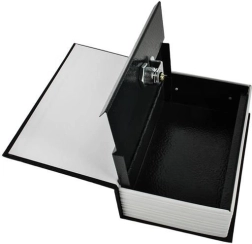 Seiful ingenios în formă de carte este conceput să se piardă printre celelalte volume din bibliotecă. Coperta exterioară imită fidel o carte reală, iar în interior se află o casetă solidă din oțel cu încuietoare mecanică cu cheie. Ideal ca ascunzătoare discretă pentru bani, bijuterii, chei, acte și alte obiecte de valoare mici.