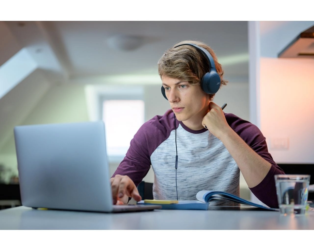 JVC HA‑S33UC sunt căști compacte on‑ear cu conectare prin cablu USB‑C, oferind o legătură rapidă și stabilă la laptopuri, telefoane și tablete fără adaptoare. Datorită pernițelor moi, căptușite și benzii de cap reglabile, asigură confort chiar și în sesiuni lungi de ascultare.