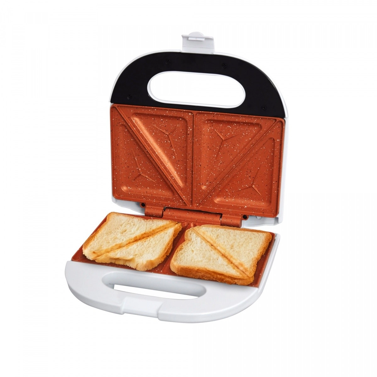 Perechea de plăci triunghiulare gătește uniform atât pâinea, cât și umplutura. Ideal pentru mic dejunuri, gustări și cine rapide.