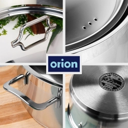 Oala este potrivită pentru inducție, gaz, electric și vitroceramică. Fundul akutermic acumulează excelent căldura, astfel încât gătiți cu mai puține grăsimi și cu păstrarea gustului, vitaminelor și mineralelor. Capacul practic din inox, cu orificii pentru evacuarea aburului, și mânerele sigure, ferme ușurează manipularea. După gătit, o puteți spăla ușor în mașina de spălat vase.