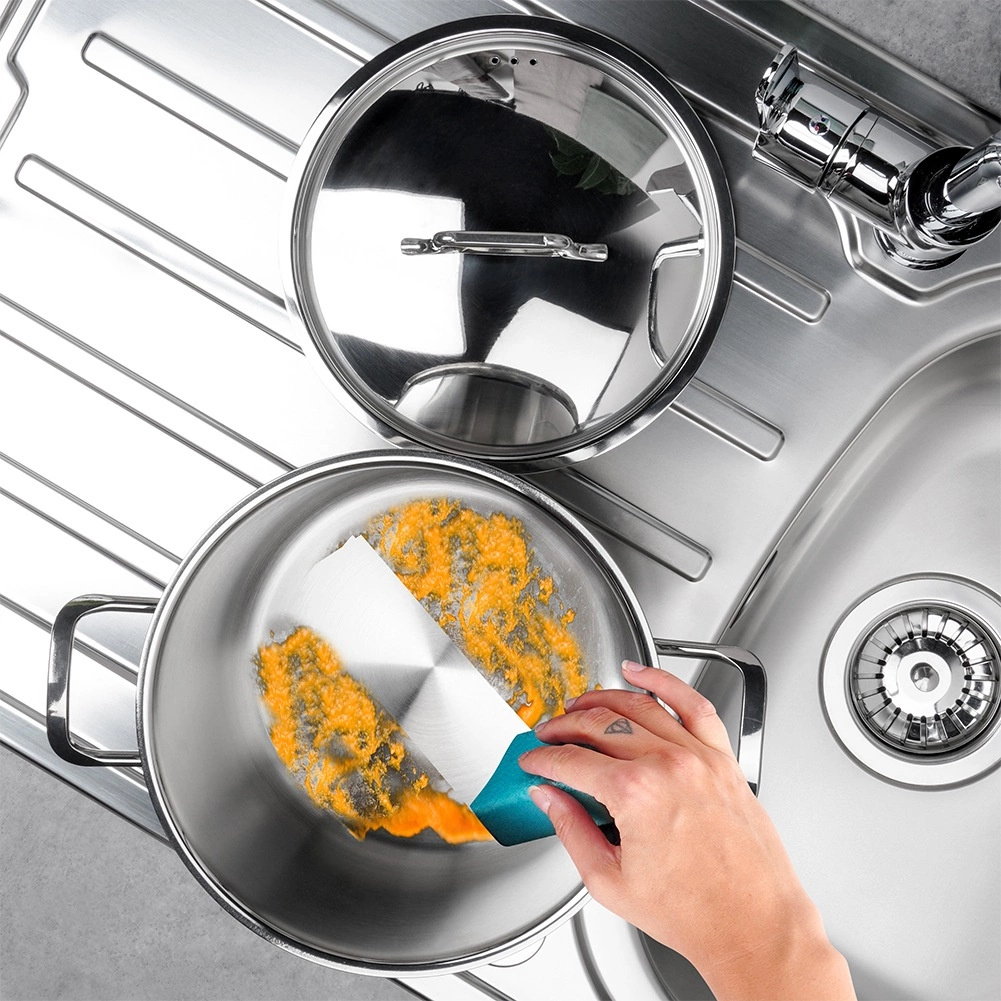 Pereții groși și solizi din oțel inoxidabil 18/10 asigură o durată lungă de viață, rezistență la coroziune și curățare ușoară fără reținerea mirosurilor.