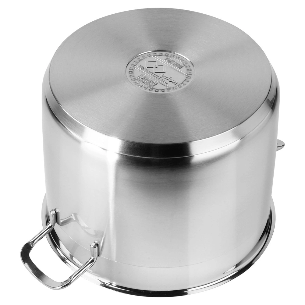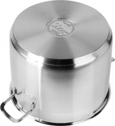 Oală robustă din oțel inoxidabil 18/10 de calitate, cu finisaj mat și un inel lucios elegant în partea superioară, proiectată pentru durabilitate și utilizare zilnică. Datorită pereților laterali groși și fundului multistrat, acumulează și distribuie uniform căldura, scurtând timpul de gătire și economisind energie.