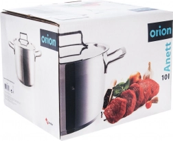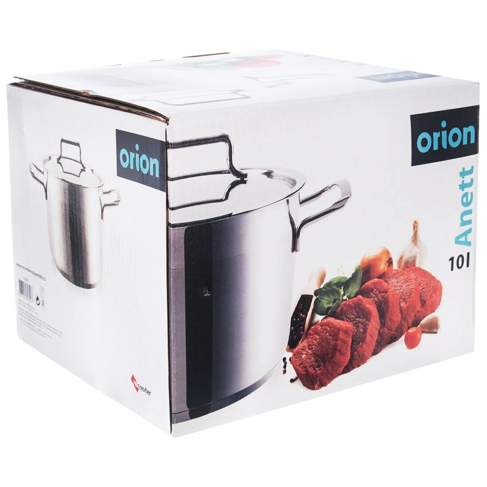 Oala din inox Anett 10 l oferă suficientă capacitate pentru supe, ciorbe și mâncăruri înăbușite. Din oțel inoxidabil 18/10 de calitate, cu finisaj mat și bandă decorativă lucioasă, garantează durabilitate, aspect elegant și întreținere ușoară. Datorită fundului multistrat cu acumulare termică, acumulează excelent și distribuie uniform căldura, astfel încât gătiți mai rapid și mai economic.