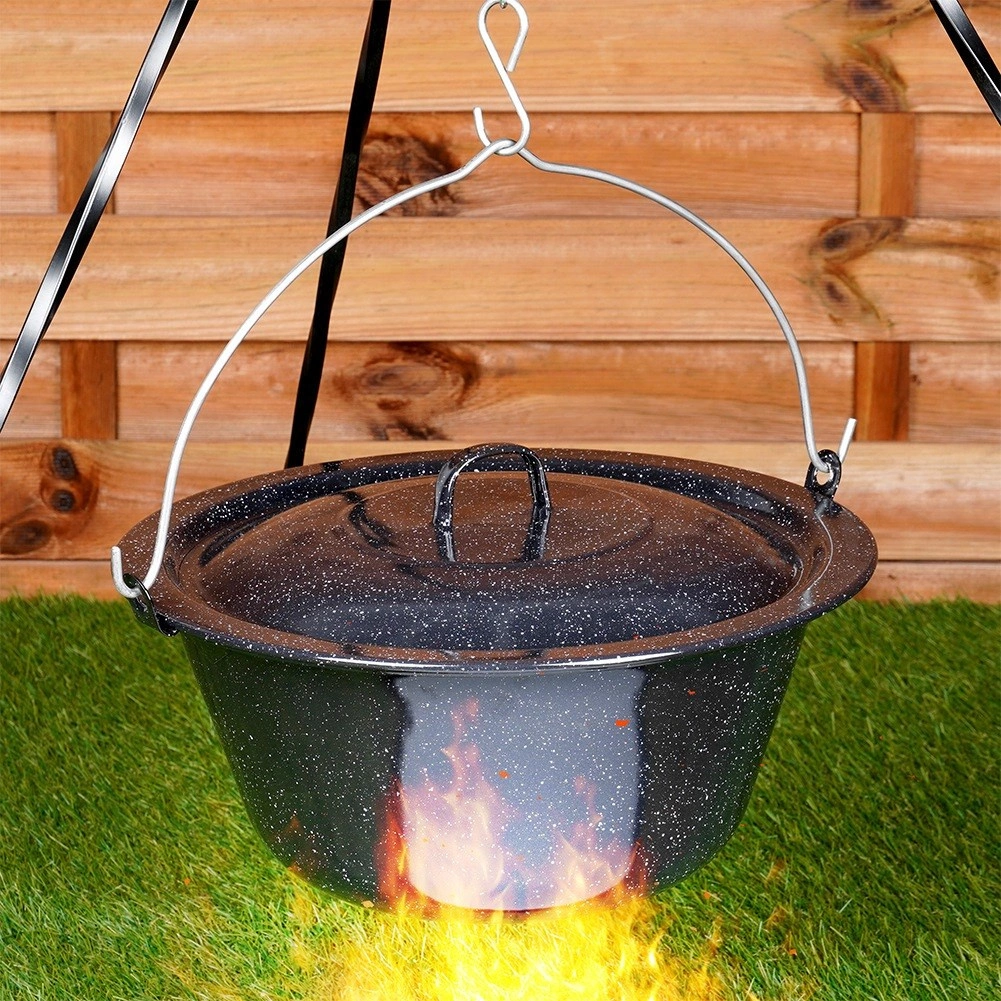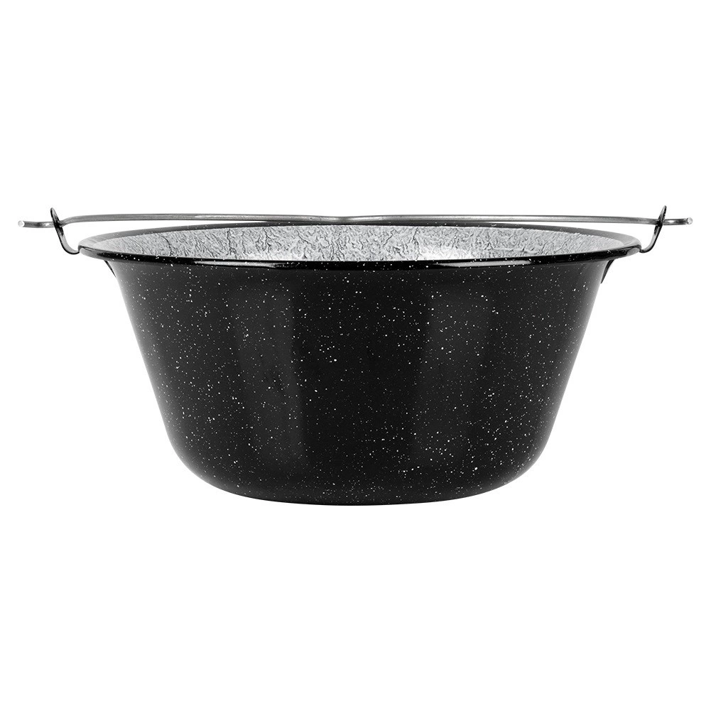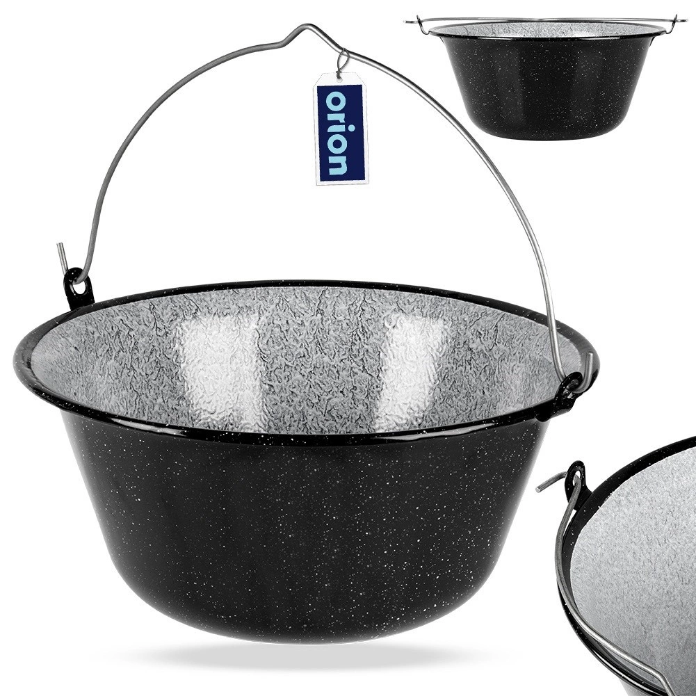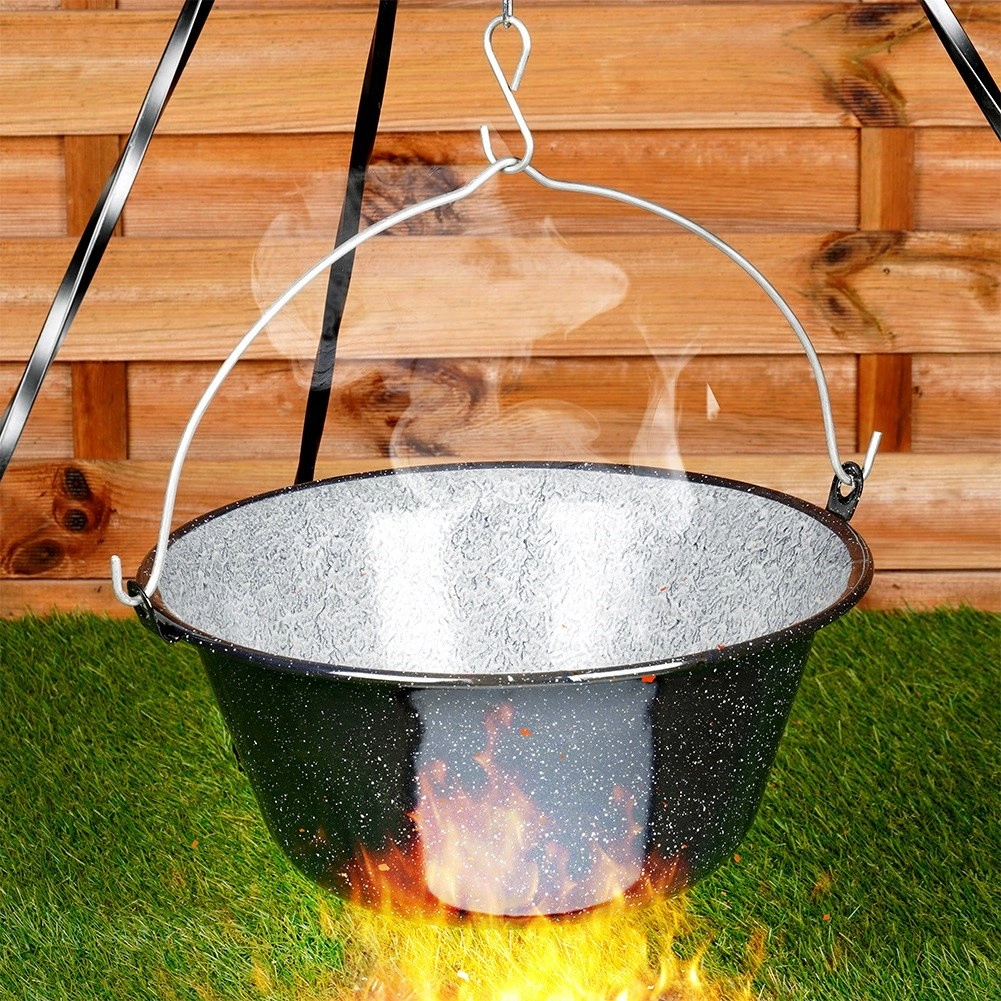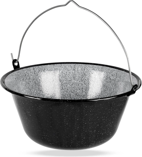 Acest ceaun suspendat, acoperit cu email, este alegerea perfectă pentru gătit în aer liber. Oțelul emailat, negru la exterior și deschis la interior, asigură durată de viață îndelungată, curățare facilă și este sigur pentru sănătate, potrivit inclusiv pentru alergici. Datorită volumului de 13 litri, veți putea ospăta confortabil întreaga familie și prietenii.