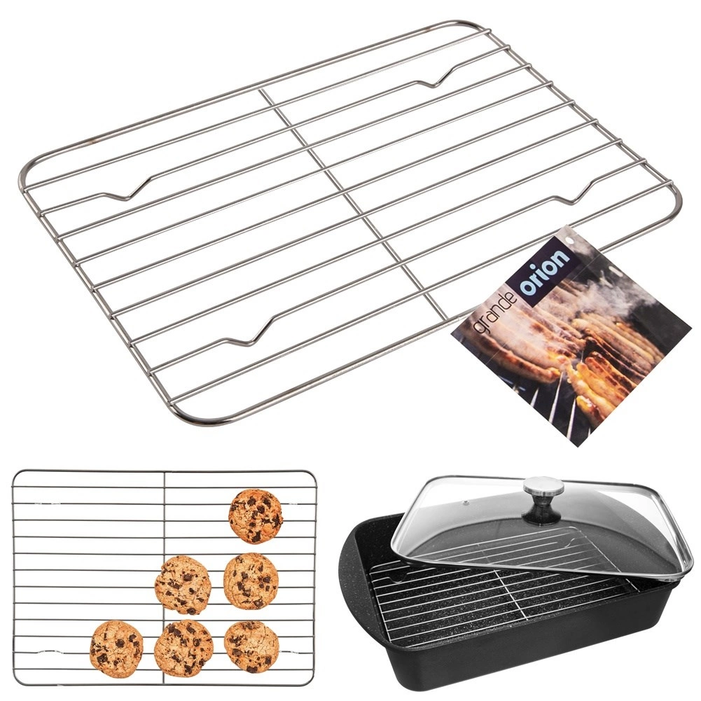 Grilajul este util și în cofetărie – ca grătar de răcire pentru biscuiți, blaturi sau deserturi glazurate. Construcția solidă din sârmă cromată este rezistentă, se curăță ușor și, cu îngrijire corespunzătoare, durează ani. Ideal pentru uz casnic, cofetării și restaurante.