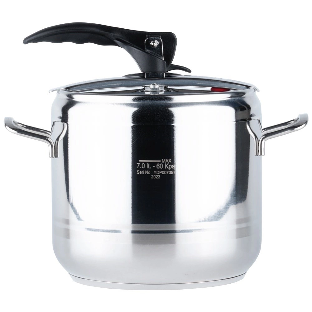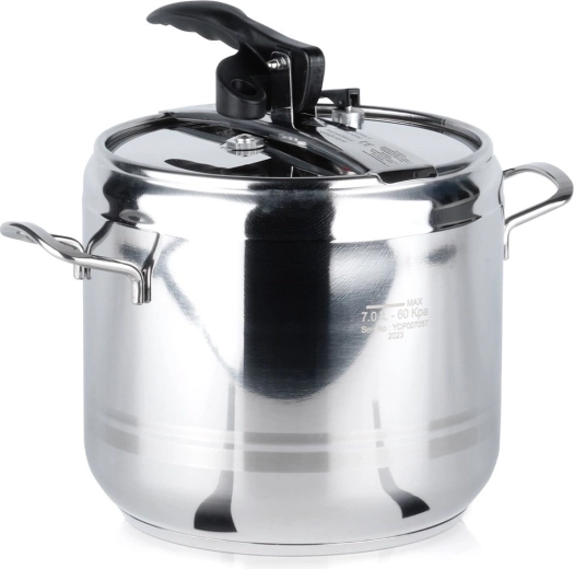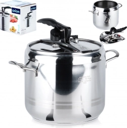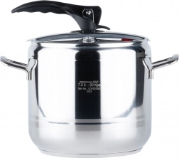 Oala sub presiune Profi 7 l este un ajutor de încredere în orice bucătărie. Permite gătirea la presiune înaltă, reducând semnificativ timpul de preparare a mâncărurilor și economisind energie. Construcția robustă din inox, fundul tip sandwich în 3 straturi și sistemul gândit de închidere asigură durabilitate și confort la utilizarea zilnică.