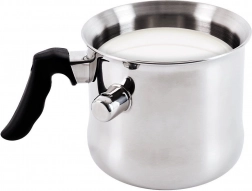 Practică oală din inox pentru lapte, cu cămașă de apă, volum 1,5 l, ideală pentru gătitul zilnic. Datorită cămășii cu apă, laptele și sosurile nu se ard, supapa fluierătoare anunță fierberea, iar inoxul de calitate distribuie uniform căldura. Potrivită pentru toate tipurile de plite, inclusiv inducție, și se poate spăla în mașina de spălat vase.
