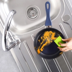 Culoarea albastră a corpului și a mânerului ergonomic, cu suprafață din silicon, aduce stil în bucătărie și oferă prindere sigură și confortabilă. Tigaia este rezistentă la coroziunea chimică cauzată de detergenți și poate fi spălată în mașina de spălat vase. Produs original al mărcii cehe ORION, fabricat în conformitate cu standardele europene.