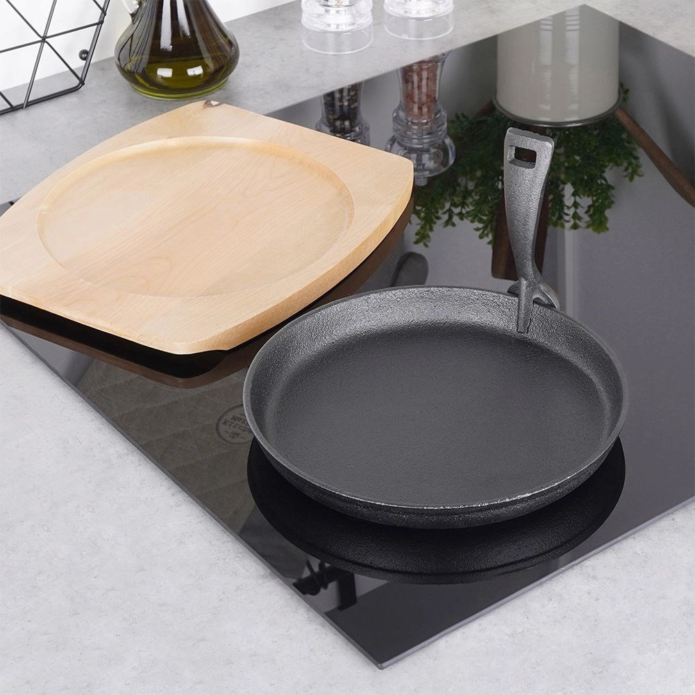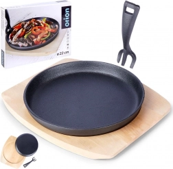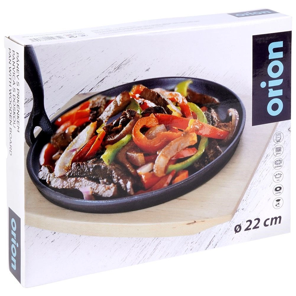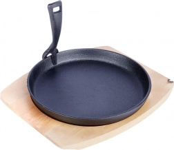 Tigaie universală din fontă pentru gătit zilnic și servire atrăgătoare direct pe masă. Fonta masivă se încălzește rapid și uniform, menține temperatura mult timp și păstrează preparatele calde și la servire. Pachetul include un suport solid din lemn, care protejează suprafețele de căldură și facilitează transportul.