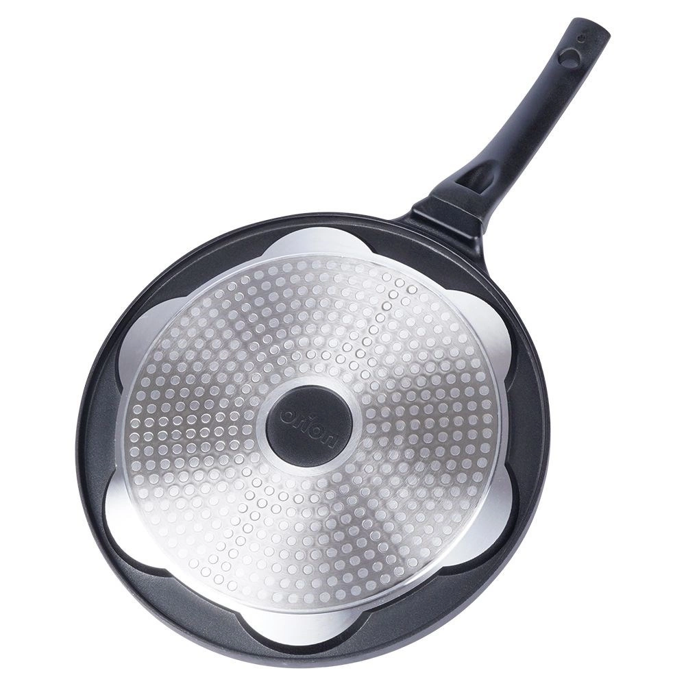 Tigaia este compatibilă cu toate tipurile de plite, inclusiv inducție, și nu conține PFOA sau PTFE. Calitate verificată conform standardelor europene – produs original marca Orion.